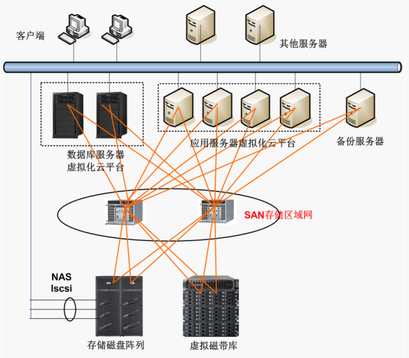 (2)支持FC、iSCSI、NAS等多種訪問方式